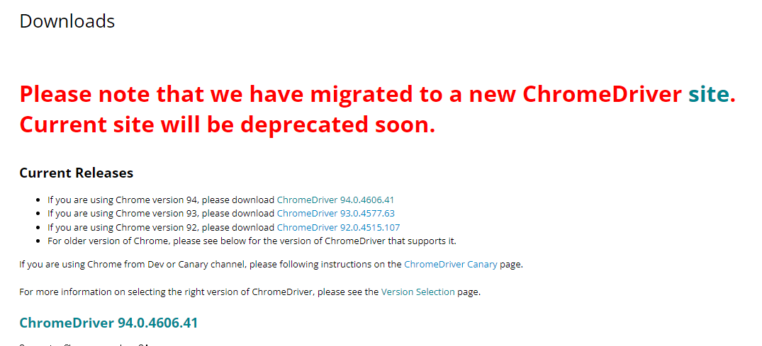 chromeDriver를 깔려면 웹사이트에 직접들어가야한다.