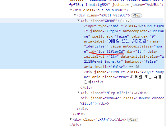 driver.find_element(By.ID, "identifierId").send_keys("<구글아이디>")