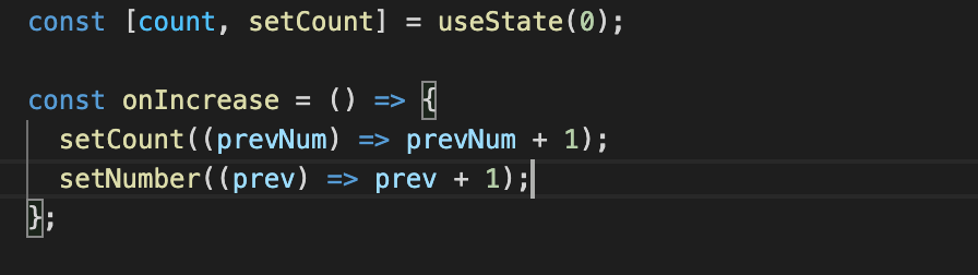 초기값을 0으로 주고 onIncrease함수를 버튼에 onClick으로 적용시키고 누를 때 마다 setCount가 1씩 증가하도록 해주었다.