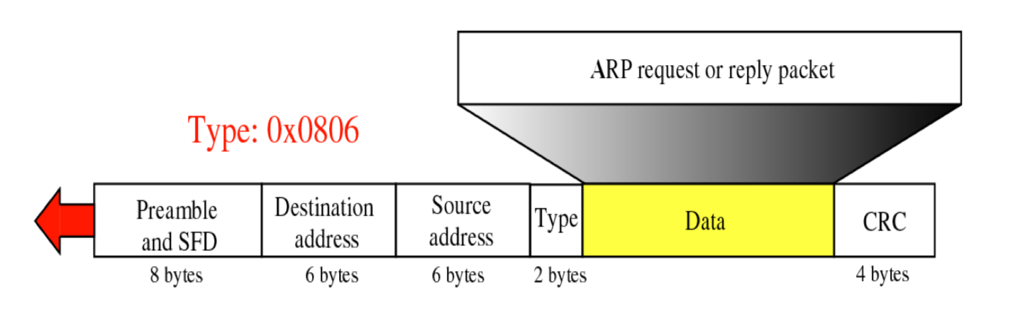 ARP는 Network layer에서 사용하는 프로토콜이기 때문에 하위 계층인 Datalink layer의 Frame에 들어갈 때 Data자리에 캡슐화되어 들어가는 것이다.