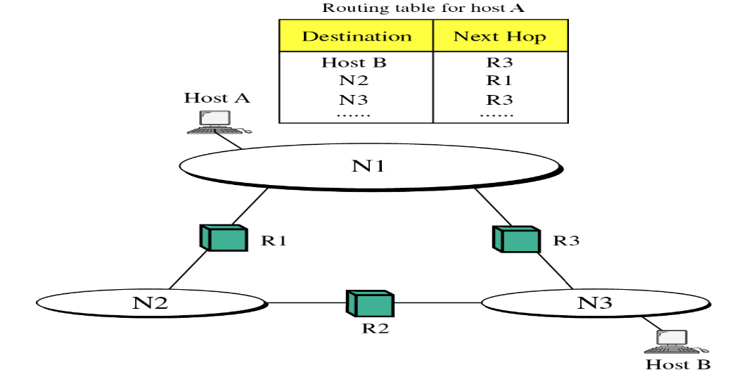 그림에서 보면 Host B는 N3에 속해있어 R3를 통해 Host A의 패킷을 전달받지만, R1과 R2를 거쳐서 전달하고 싶다면 해당 Routing Table에서는 Host B에 대한 Next hop을 R3가 아닌 R1으로 설정하는 것이다.