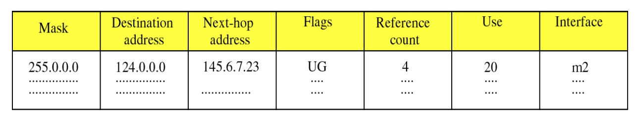 이런 항목들로 엔트리가 구성되게 된다. 여기서 주로 필요한 핵심 정보들은 Mask(Network address를 알 수 있음), Destination address, Next-hop address 이 3개이다. 나머지는 부가적인 정보들이다.
