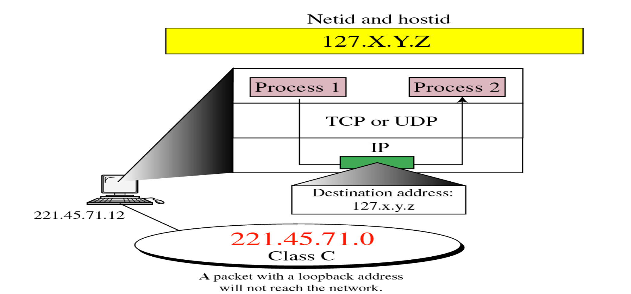 이 주소를 사용하는 것은 이 호스트 밖으로 나가면 안되기 때문에, Application Layer에서 내려와서 Network Layer에서는 다시 Loopback 시켜서 다시 위의 Application Layer로 올려보낸다.