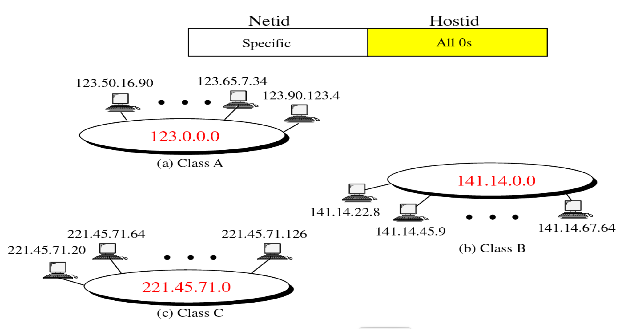 그림에서처럼 Class B 네트워크를 가리키고 싶다면, 141.14.0.0 이렇게 Netid만 적고 Hostid는 0으로 통일시킨다.