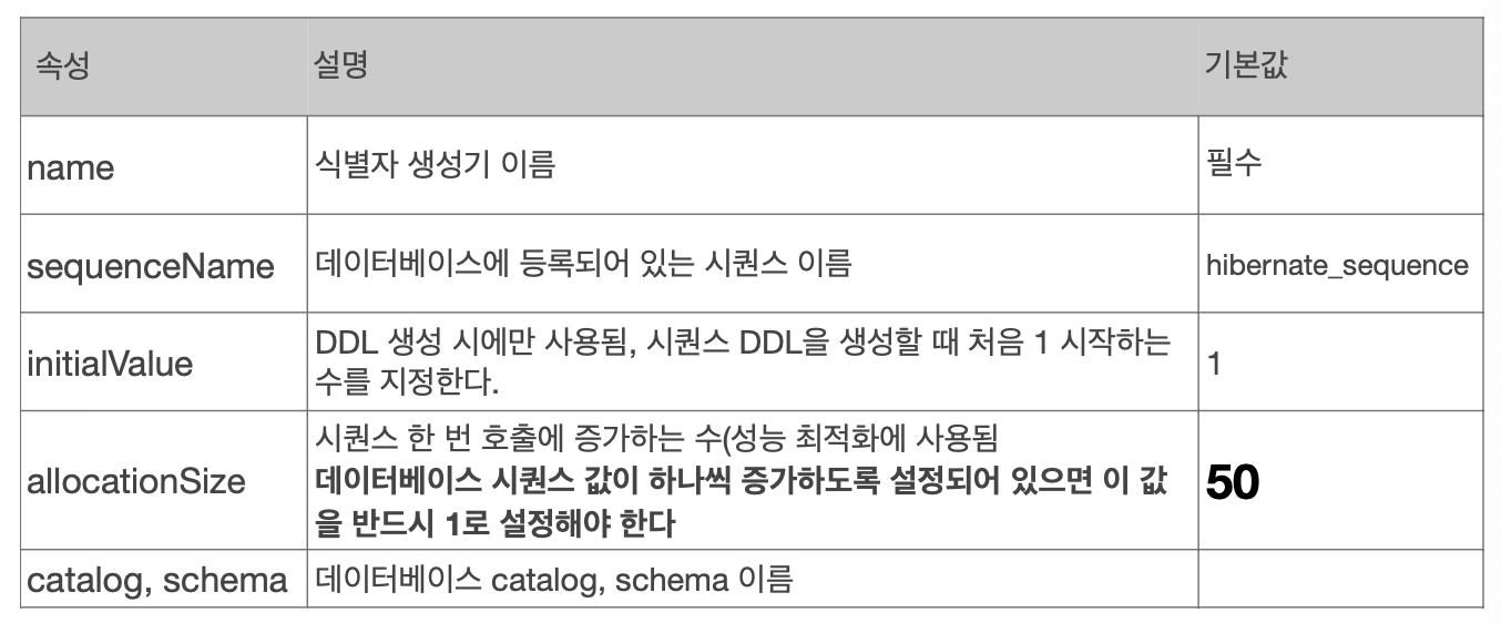 sequenceName=“MEMBER_SEQ",//매핑할 데이터베이스 시퀀스 이름