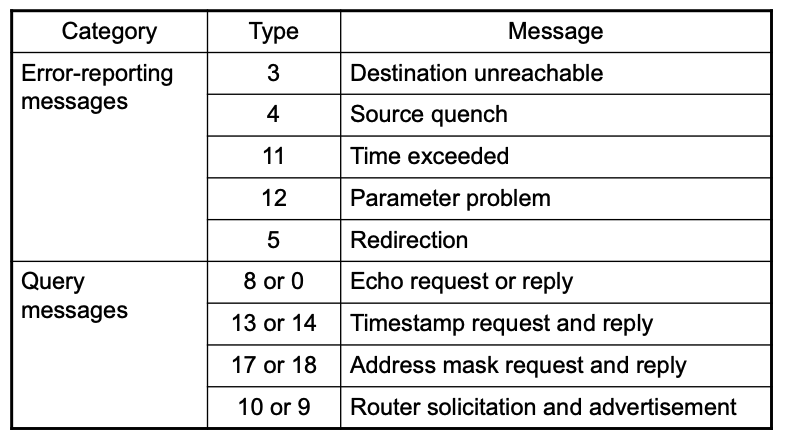 ICMP는 에러가 났다는 것을 알려주는 Error-reporting message와 지금 상태가 어떤가를 알려주는 Query message로 나뉜다.