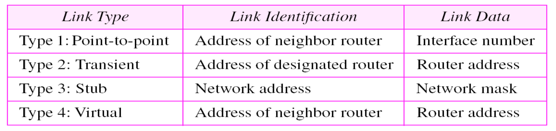 실제 라우터의 링크를 정의하는, 즉 자신이 직접적으로 연결되어 있는 링크에 대한 정보를 만들기 위해 사용하는 것이다. Router LSA에 포함되는 내용은 다음과 같다. 이때, Link Type에 따라 들어가는 정보가 조금씩 다르니 주의해야 한다.