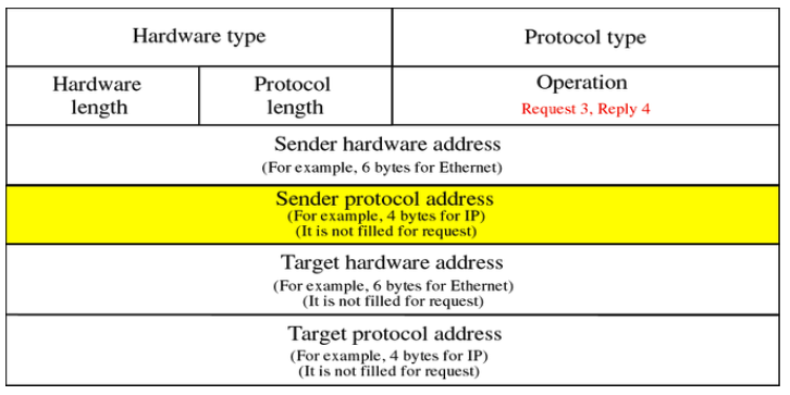 형식은 ARP 패킷과 거의 동일하지만, Request에서 Sender의 Protocol address를 공란으로 비워두고 Target은 Broadcast 해야하므로 공란으로 비워서 Request하는 것이 특징이다.