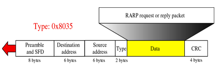 역시 이 RARP 패킷도 Datalink의 Frame으로 들어가면 ARP처럼 캡슐화되어 들어가게 되고, Frame의 Type 부분에서 이 프레임이 RARP 프레임이라는 것을 명시해줄 수 있다.