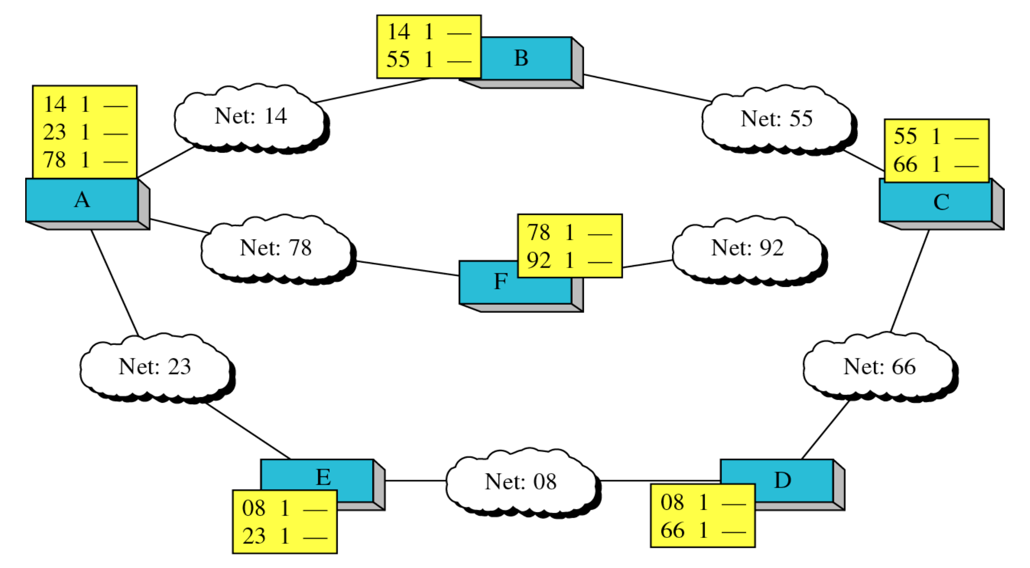 초기에 RIP가 진행되면 테이블 상태가 완성된다.