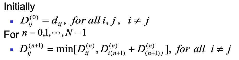 이건 처음부터 시작해서 i를 Source node로 두고, h 즉 최대로 거칠 수 있는 arc의 수를 하나씩 늘려가면서 기존 시행보다 더 낮은 값을 도출해낸다면 D_i를 업데이트 한다.