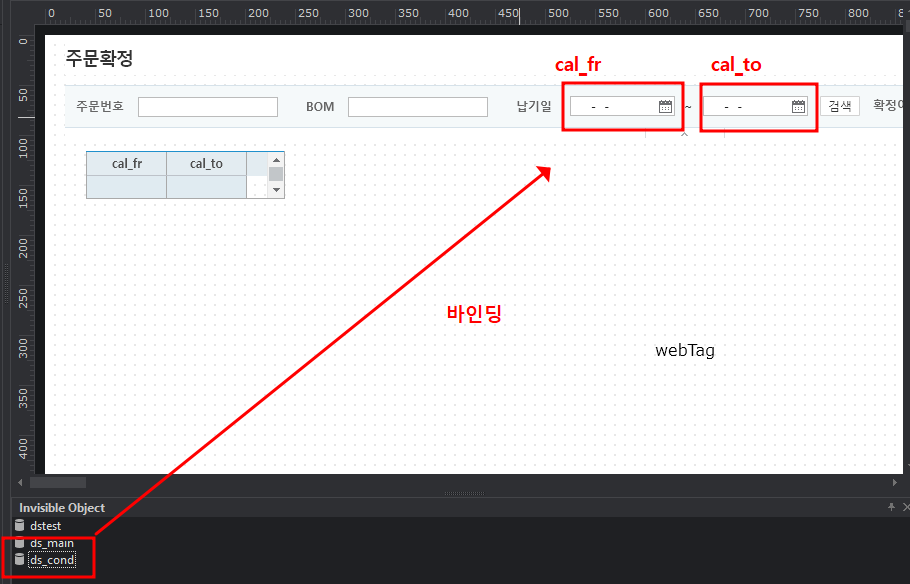 데이터셋 ds_cond는 쿼리에서 사용할 파라미터를 바인딩하여 사용 (아래에서 보여줌)