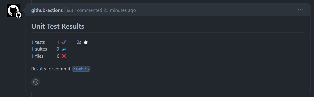 Publish-Unit-Test-Results로 결과 확인 후에 커밋 타고 들어가서 Check 코멘트 확인하는 연계가 좋아보여서 추가함.