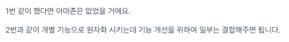 "저번 프로젝트에 같은 고민을 했었고, 그 때는 프론트엔드에서 하나의 요청에 모든 로직을 담아달라고 부탁하셔서 그렇게 해드렸다. 하지만 다시 만든다면 다른 방법을 생각했을 것 같다."