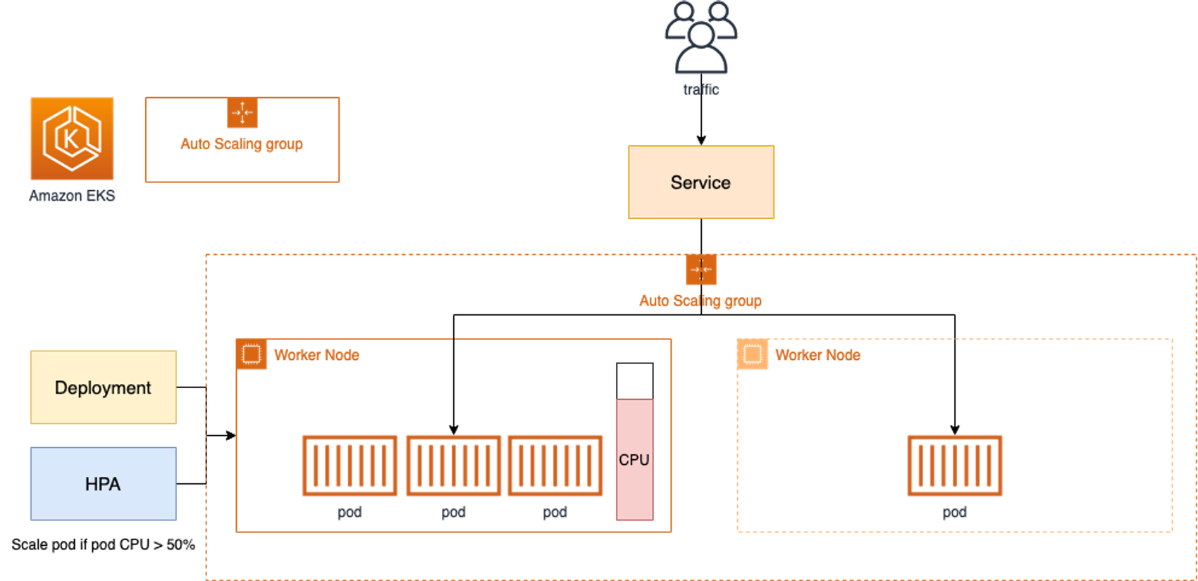 CA는 Node의 정해진 사양에 따라 POD가 더 이상 스케줄링될 수 없어서 Pending 상태에 이르면, Autoscaler가 동작하여 Node의 개수를 증가시킨다.