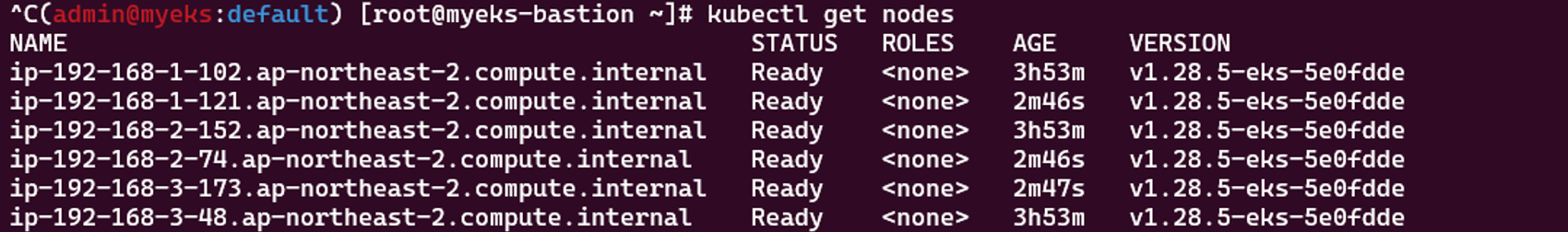 POD를 삭제하고 10분 넘어서 확인해 보니 이미 노드는 줄어져 있었다!