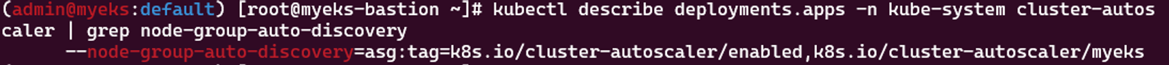 export ASG_NAME=$(aws autoscaling describe-auto-scaling-groups --query "AutoScalingGroups[? Tags[? (Key=='eks:cluster-name') && Value=='myeks']].AutoScalingGroupName" --output text)