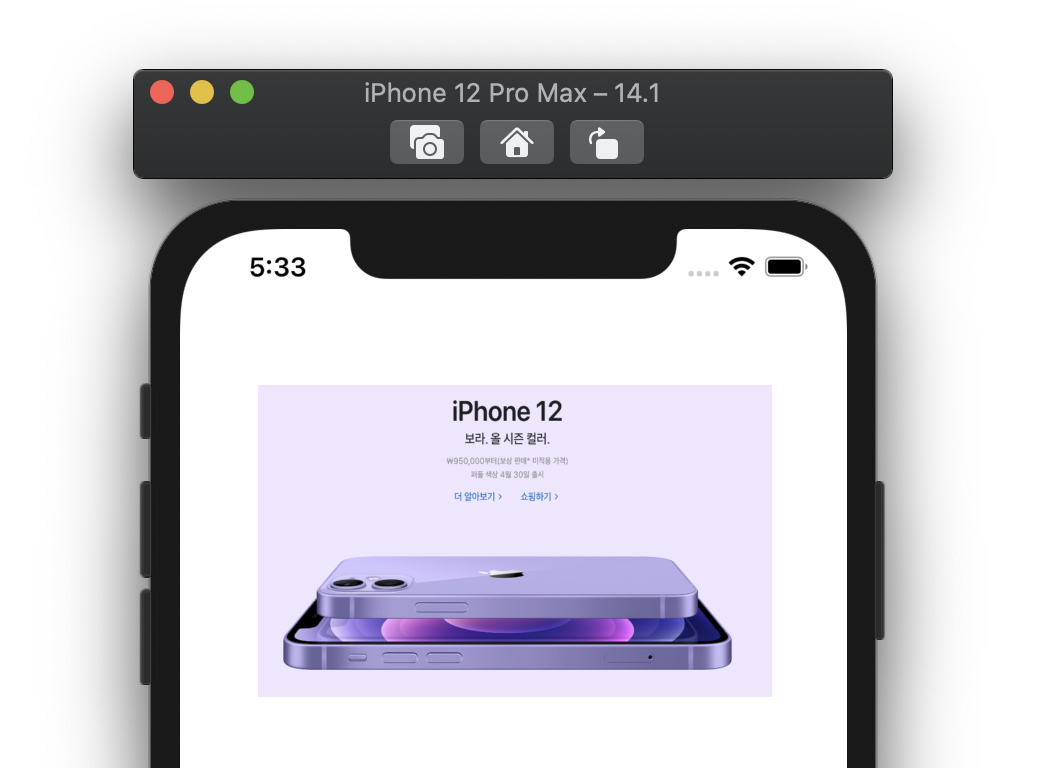 이렇게 구성해주면, 12Pro Max에서는 다음과 같이 잘 나온다.