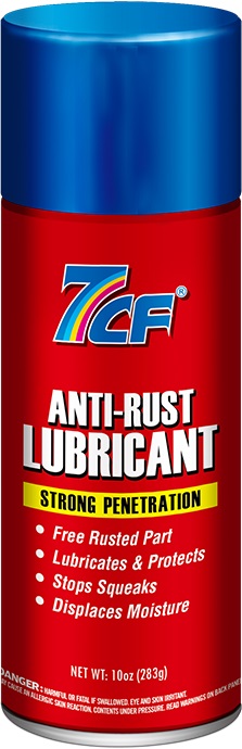 7CF® The product is aerosol all purpose anti rust lubricant that quickly cleans, penetrates, lubricates and protects against corrosion. Anti-rust Lubricant spray stops squeals, loosens rusted parts and displaces moisture.