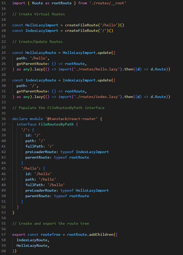 routeTree.gen.ts아래와 같이 routeTree.gen.ts에 잘 등록되었다면 성공적으로 등록 완료!