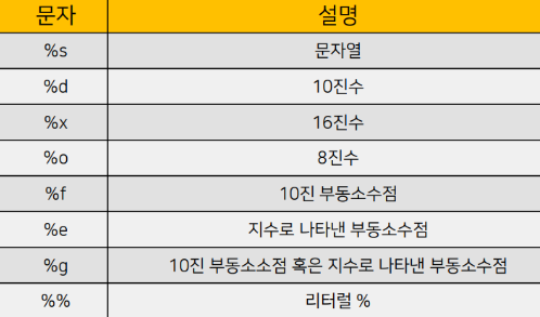 ํฌํจ๋ ํฌ๋งท์ง์ ์(%s, %d, %.1f)์ ํด๋น๋๋ ๊ฐ์ ์ค์ ๋ณ์๋ก ๋์ฒด์ํจ.
