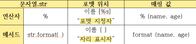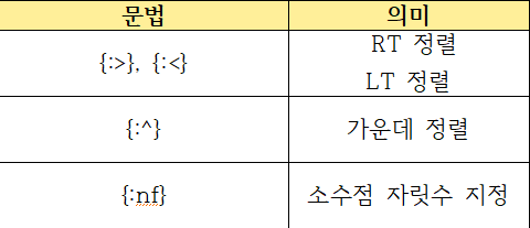 -Ex) str"{์ด์ฉ์}๋ ํ์ํฉ๋๋ค!" ๋ผ๋ ํฌ๋งท์ค์ -> ํ์์, (์ด์ฉ์) ๊ฐ๋ง ์ง์ -> ํฌ๋งท์ ๋ง๋ ๋ฌธ์์ด ์ถ๋ ฅ.