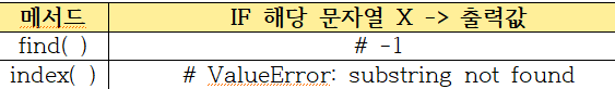 print(y.find("Java")) #-1 (์ฐพ๋ ๋ฌธ์์ด์ด ์์ ๊ฒฝ์ฐ)