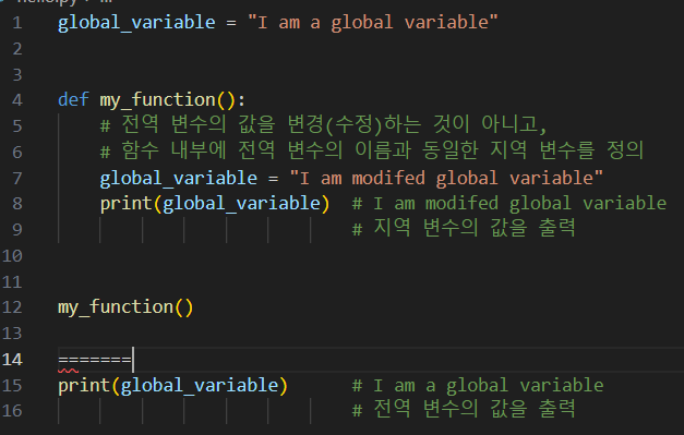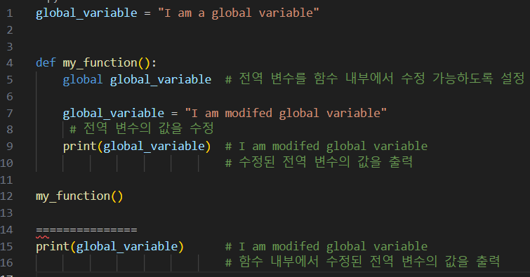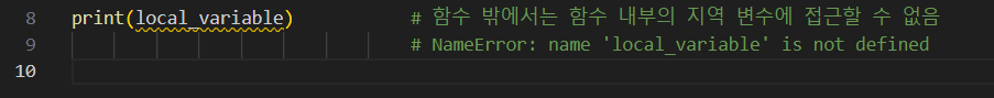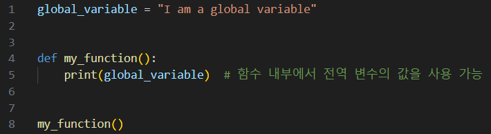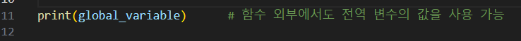 : 함수 외부에서 변수 선언 -> 프로그램 전체에서 접근이 가능