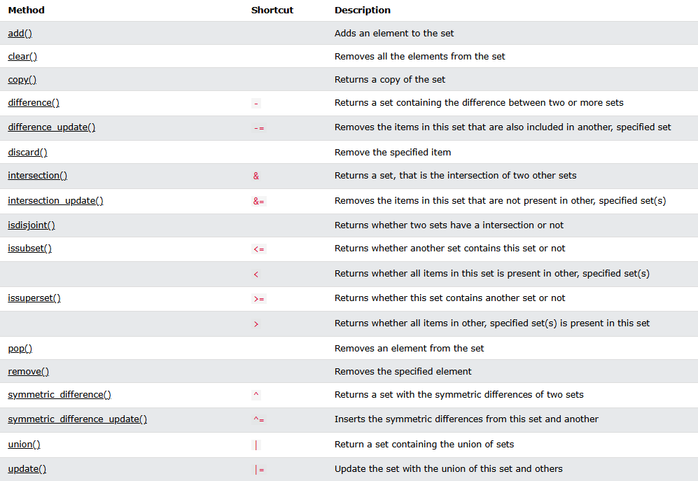 1. add( ) - 단일 데이터 추가s = set([1,2,3,4]) s. add(10) print(s) #{1, 2, 3, 4, 10}