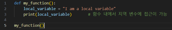 : 함수 내부에서 변수 선언 -> 해당 함수 내에서만 접근가능