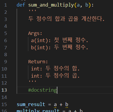 (*독스트링(docstring) : Python에서 함수, 클래스, 모듈 또는 메서드에 대한 설명을 작성하는 데 사용되는 문자열.)