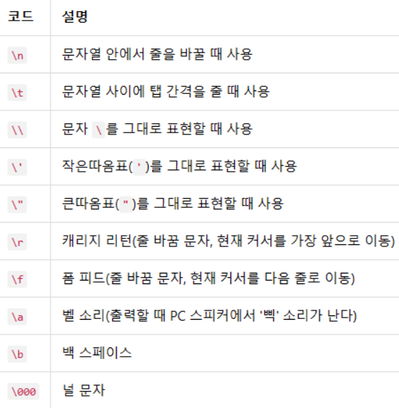 : 이스케이프 시퀀스를 따르는 문자들로서 다음 문자가 특수 문자임을 알리는