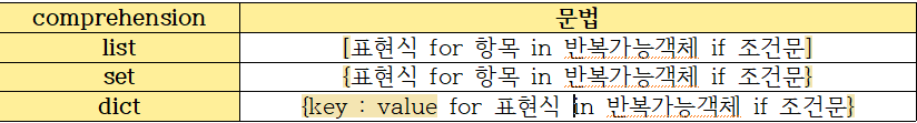 [표현식 for 항목 in 반복가능객체 if 조건문]<<1. for 반복문>>