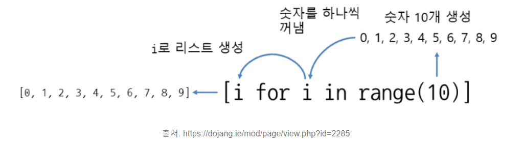 : 반복/조건문을 간결 + 효율적인 방식으로 한 줄로 표현된 새로운 리스트를 생성 문법