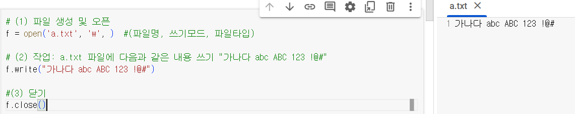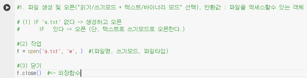 / 쓰기모드:w, 읽기모드:r / 텍스트모드(),바이너리 모드(b)