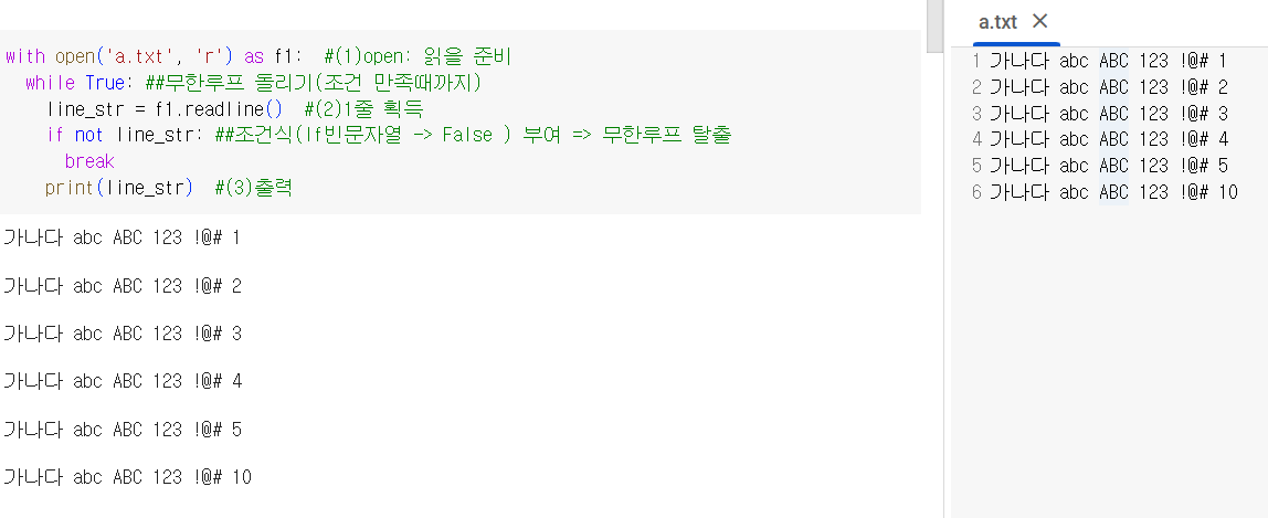 ⭐⭐실습> 'a.txt'파일 한줄씨 읽어 출력하기
