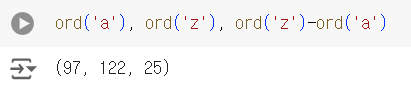 ord(문자) ➤ 아스키코드 리턴