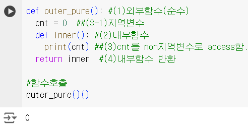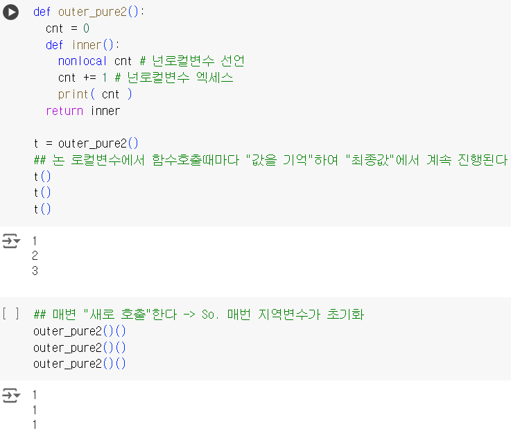 ↪️ (+) 변수 cnt = outer_pure()에게는 지역변수 O, inner()에게는 지역 변수 X