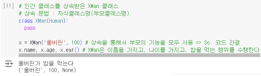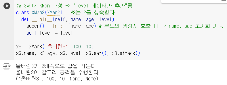 부모클레스 has a 자식클레스자식클레스 is a 부모클레스 class XMan4(IronMan,XMan3):
