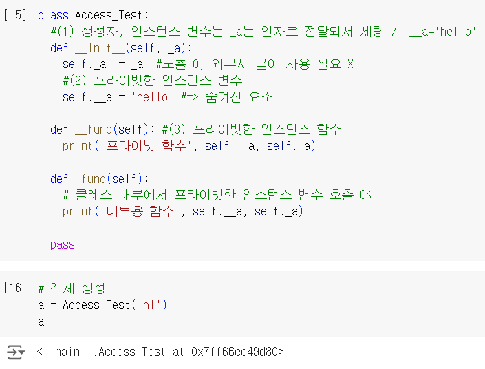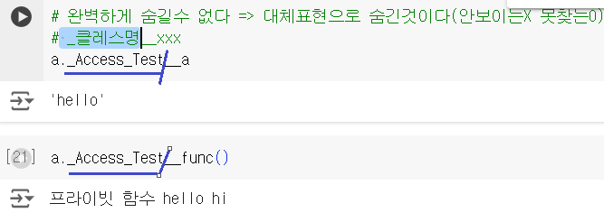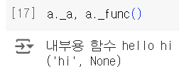 🔹 _xxx : 외부 개발자가 굳이 알 필요 없다(접근OK), 내부에서만 사용가능