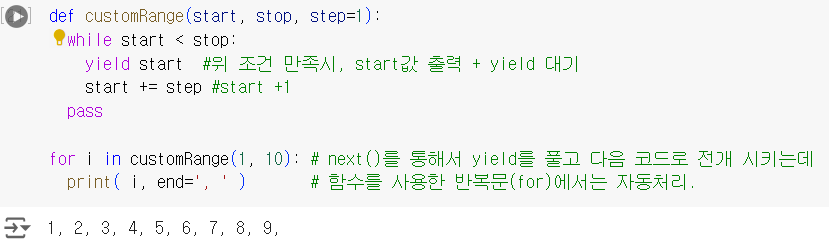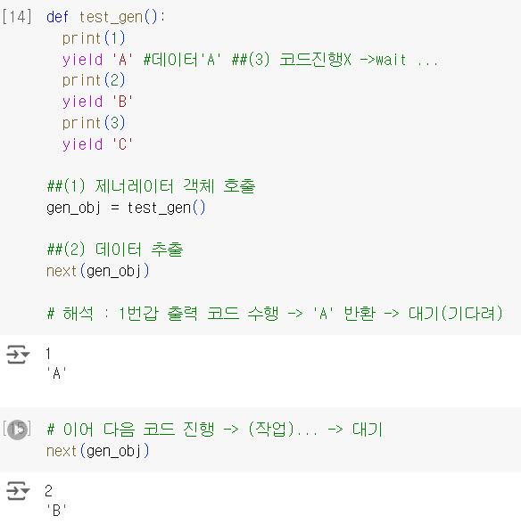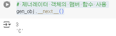 yield다음 명령까지 대기next() : 데이터 획득메모리 최적화 << 차이 >>