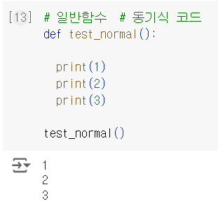 ⤷ *동기식 코드 : 차례로 수행. ( 즉, 위의 코드가 끝나지 않으면 아래 코드 수행 X )