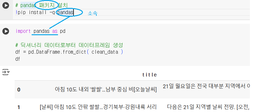 : list(dict, ..) ➜ DataFrame 로 변형 ➜ sql 변형 ➜ DB에 저장