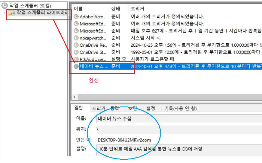 - 윈도우 하단 [스케줄러] 검색 > 실행