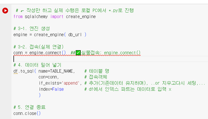 df.to_sql( name=TABLE_NAME, # 테이블명