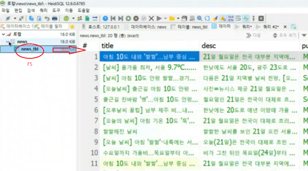 TABLE_NAME = 'news_tbl' # 데이터베이스상 테이블명