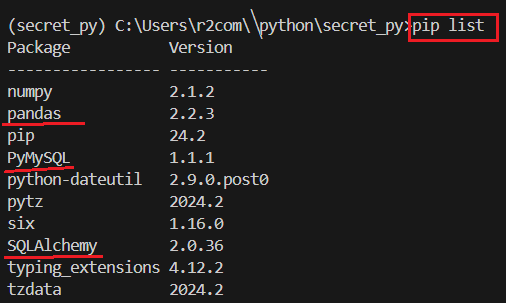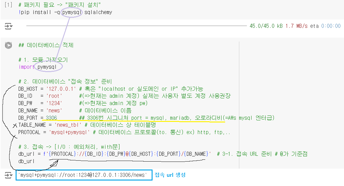 - 파이썬 🔁 pymysql(패키지) 🔁 sqlalchemy(패키지) 🔁 mariadb
