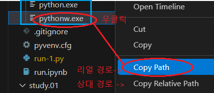 -python.exe|pythonw.exe= 가상환경에 존재하는 파일로 세팅🔹(1) 가상환경 사용↪️*(위치) 해당 가상환경 > ScriptsC:\Users\r2com\⧹python\secret_py\Scripts\pythonw.exe🔹(2) OS에 설치된 파이썬 사용자 (환경변수에 classpath가 잡혔다면)