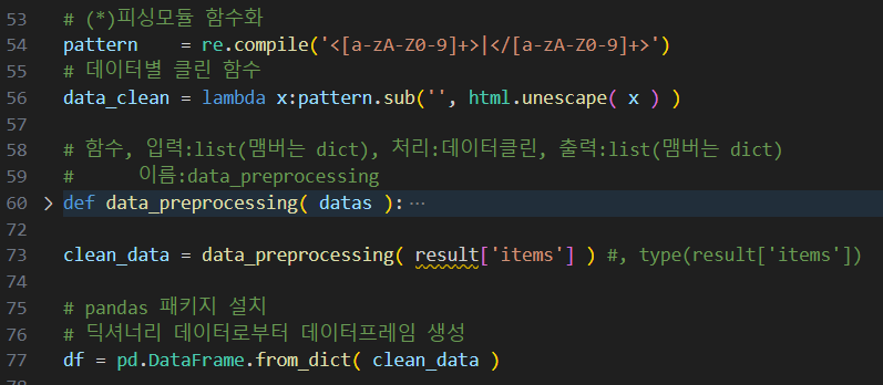 # 함수, 입력:list(맴버는 dict), 처리:데이터클린, 출력:list(맴버는 dict)