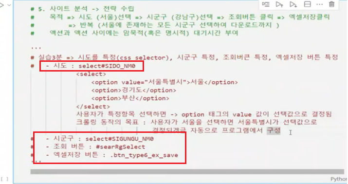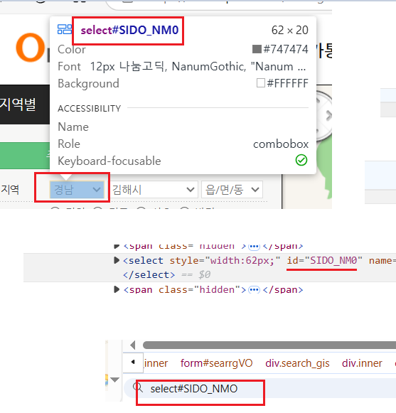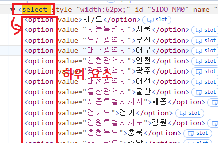 🔽🔽🔽Ex.01 > "시도" 특정 - id값